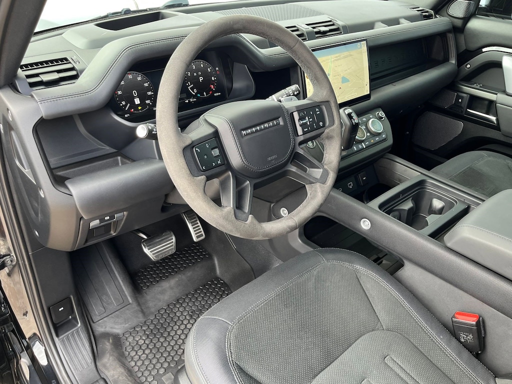 Boasts 19 Highway MPG and 14 City MPG! Dealer Certified Pre-Owned. This Land Rover Defender 110 boasts a Intercooled Supercharger Premium Unleaded V-8 5.0 L/305 engine powering this Automatic transmission. Wireless Phone Connectivity, Windsor Leather Seat Trim -inc: Dinamica suedecloth and Robustec seating, Wheels: 22" Gloss Dark Grey Style 5098 -inc: 5 spoke w/contrast diamond turned finish.